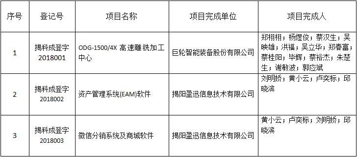 為加強科技成果管理,促進科技成果交流,避免重復研究,使科技成果盡快轉(zhuǎn)化為生產(chǎn)力,加速我市經(jīng)濟發(fā)展,對我市的科技成果進行登記。根據(jù)《揭陽市科學技術(shù)研究成果管理實施細則》《政府向社會轉(zhuǎn)移職能工作方案的通知》文件,市高企協(xié)會現(xiàn)公布申請2018年度我市登記的科技成果,如下表。