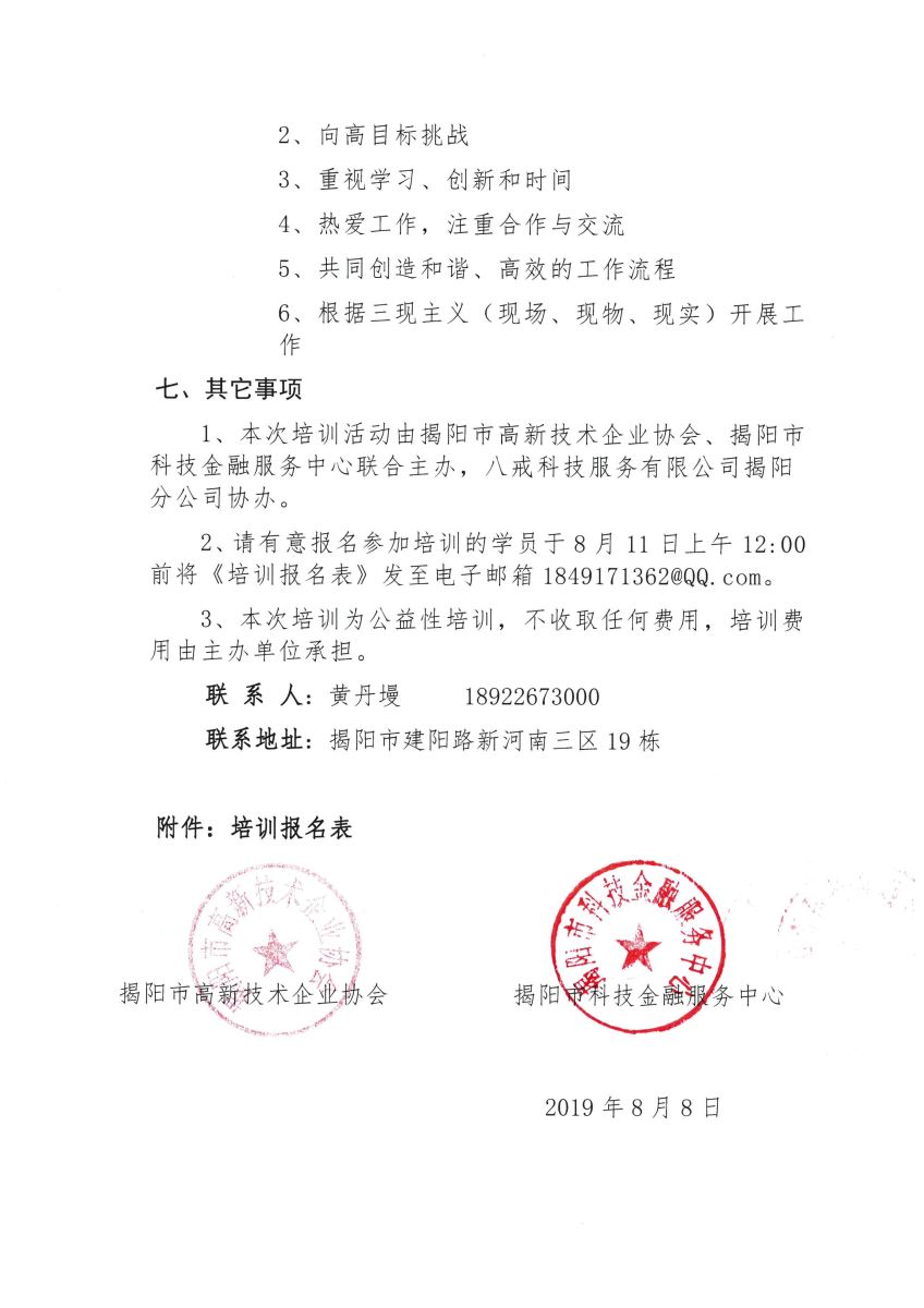 現(xiàn)將《關(guān)于舉辦2019年揭陽市中小微企業(yè)中高層管理人員能力提升專題培訓(xùn)的通知》發(fā)給你們,請參加人員按附件填寫報名表,并于2019年8月11日上午12:00前報送高企協(xié)會。