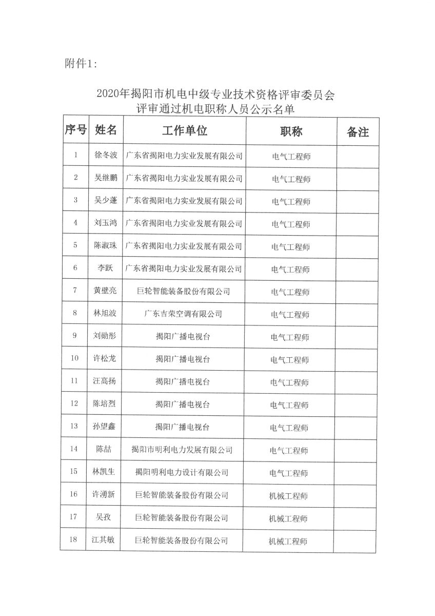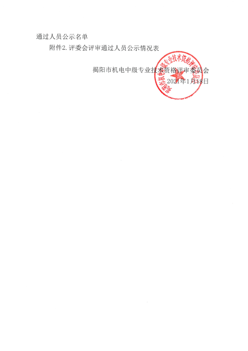關(guān)于對2020年揭陽市機(jī)電中級專業(yè)技術(shù)資格評審?fù)ㄟ^人員名單進(jìn)行公示的通知