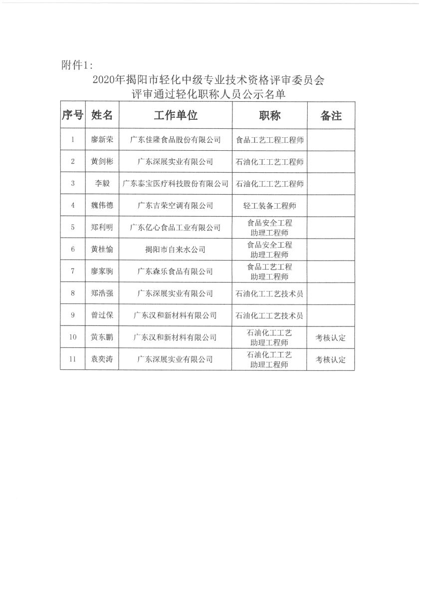 關(guān)于對2020年揭陽市輕化中級專業(yè)技術(shù)資格評審?fù)ㄟ^人員名單進(jìn)行公示的通知