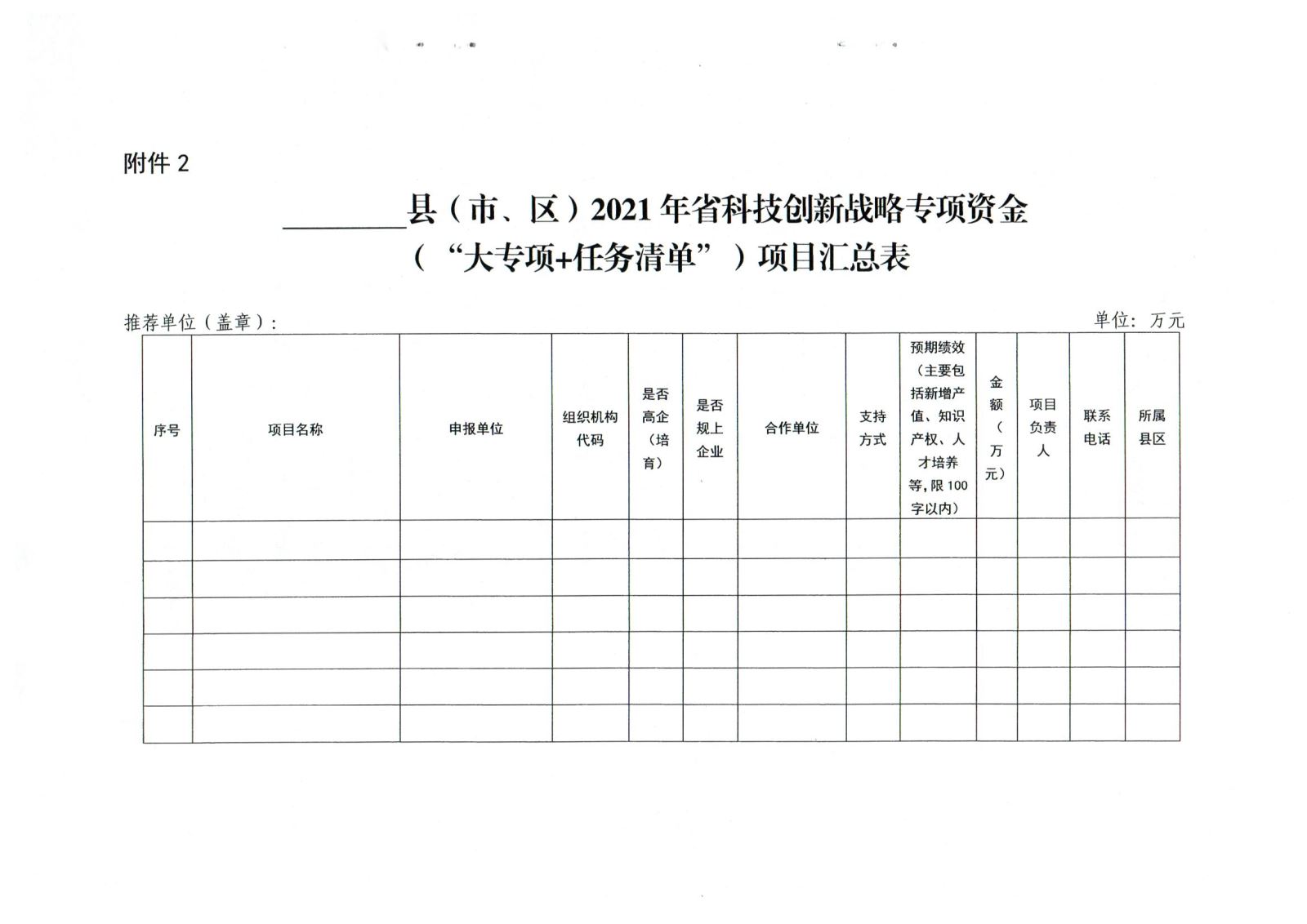關(guān)于組織申報(bào)2021年省科技創(chuàng)新戰(zhàn)略專項(xiàng)資金(“大專項(xiàng)+任務(wù)清單”)項(xiàng)目的通知