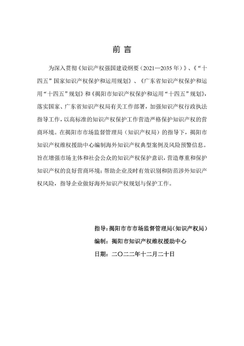 海外知識產(chǎn)權(quán)典型案例暨風(fēng)險預(yù)警信息