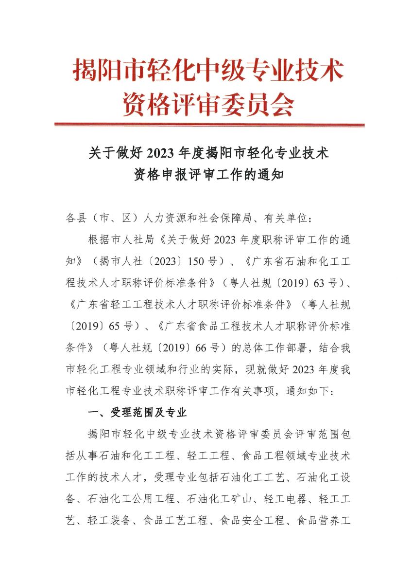 附件:1.關(guān)于做好2023年度職稱(chēng)評(píng)審工作的通知(揭市人社〔2023〕150號(hào))