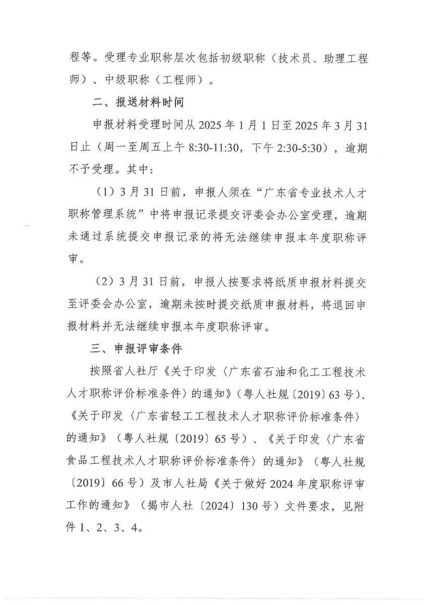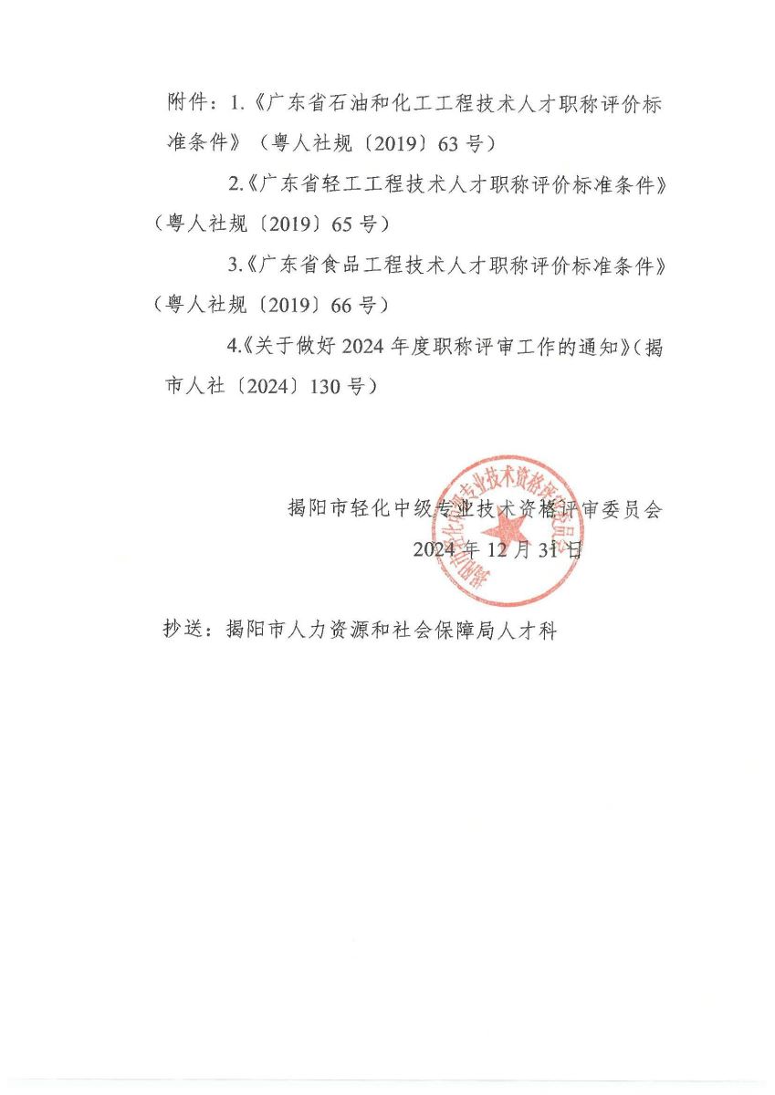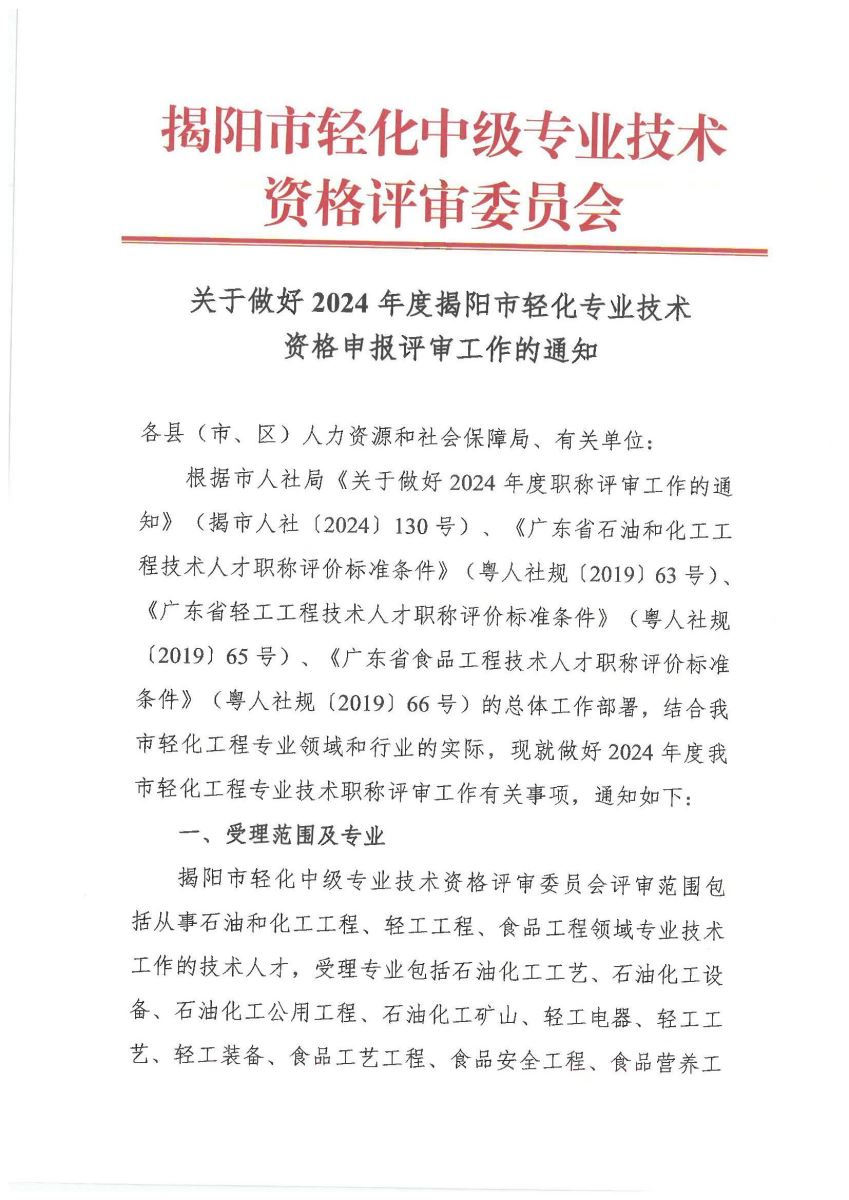 關(guān)于做好 2024 年度揭陽市輕化專業(yè)技術(shù)資格申報評審工作的通知