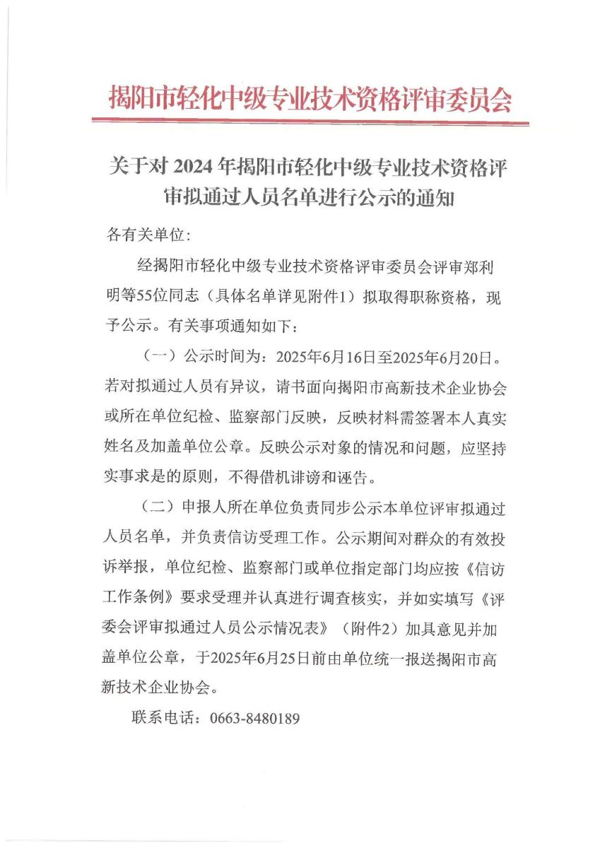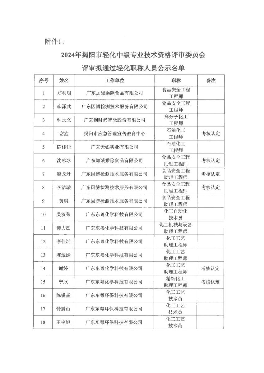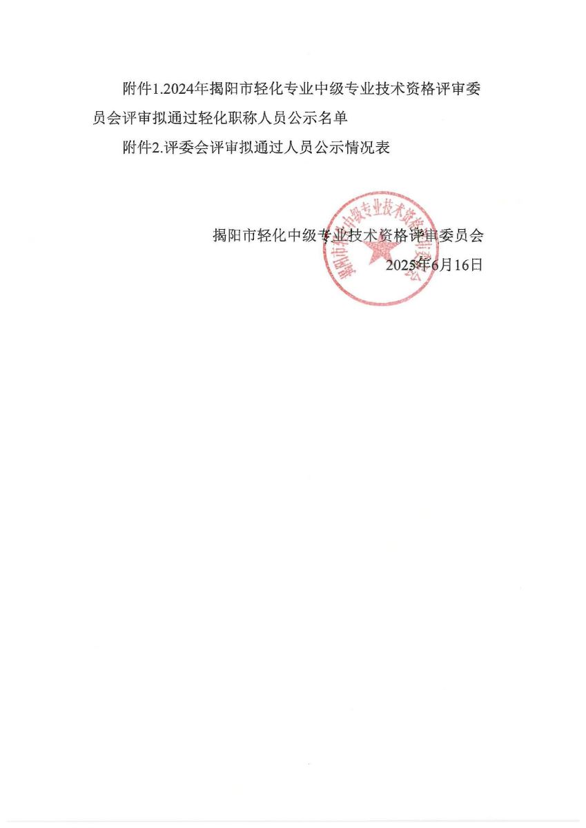 附件:關(guān)于對2024年揭陽市輕化中級(jí)專業(yè)技術(shù)資格評(píng)審擬通過人員名單進(jìn)行公示的通知